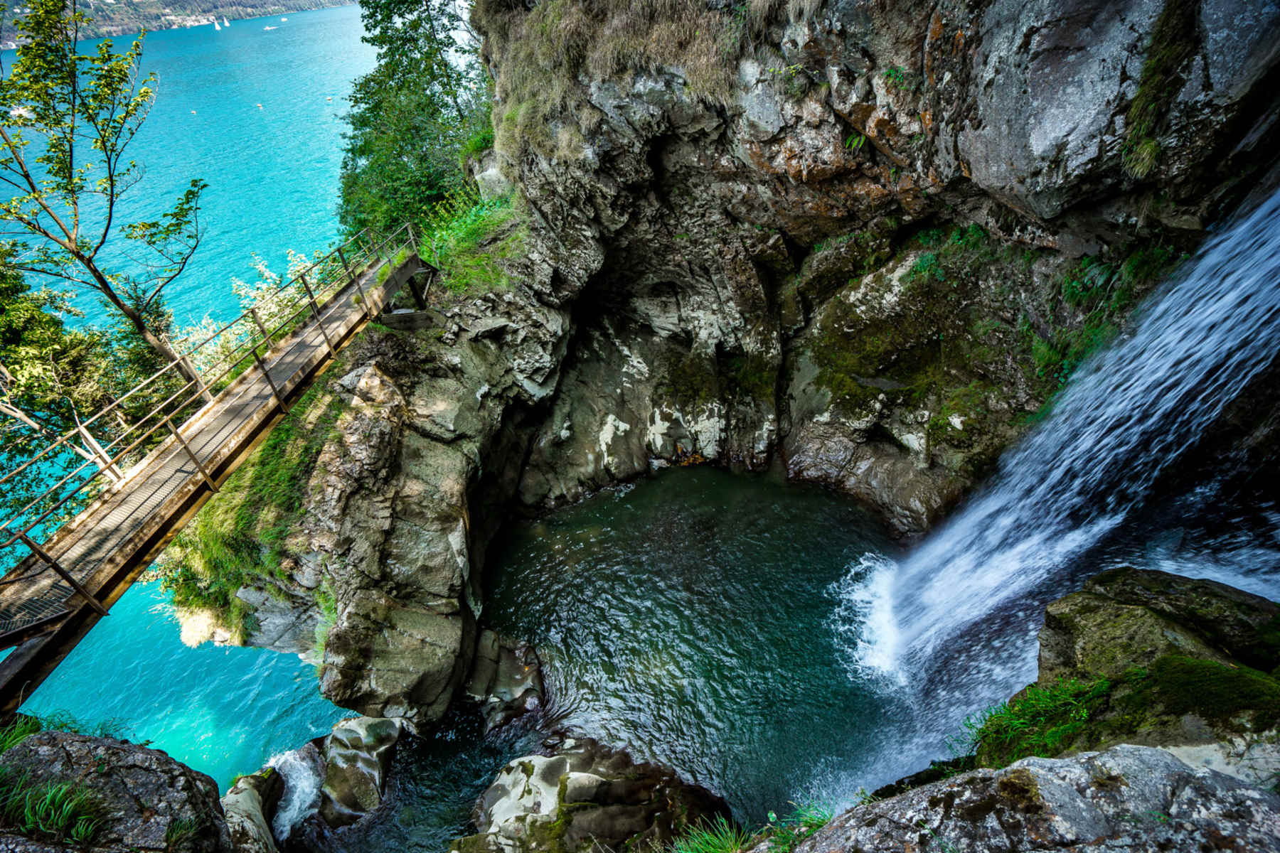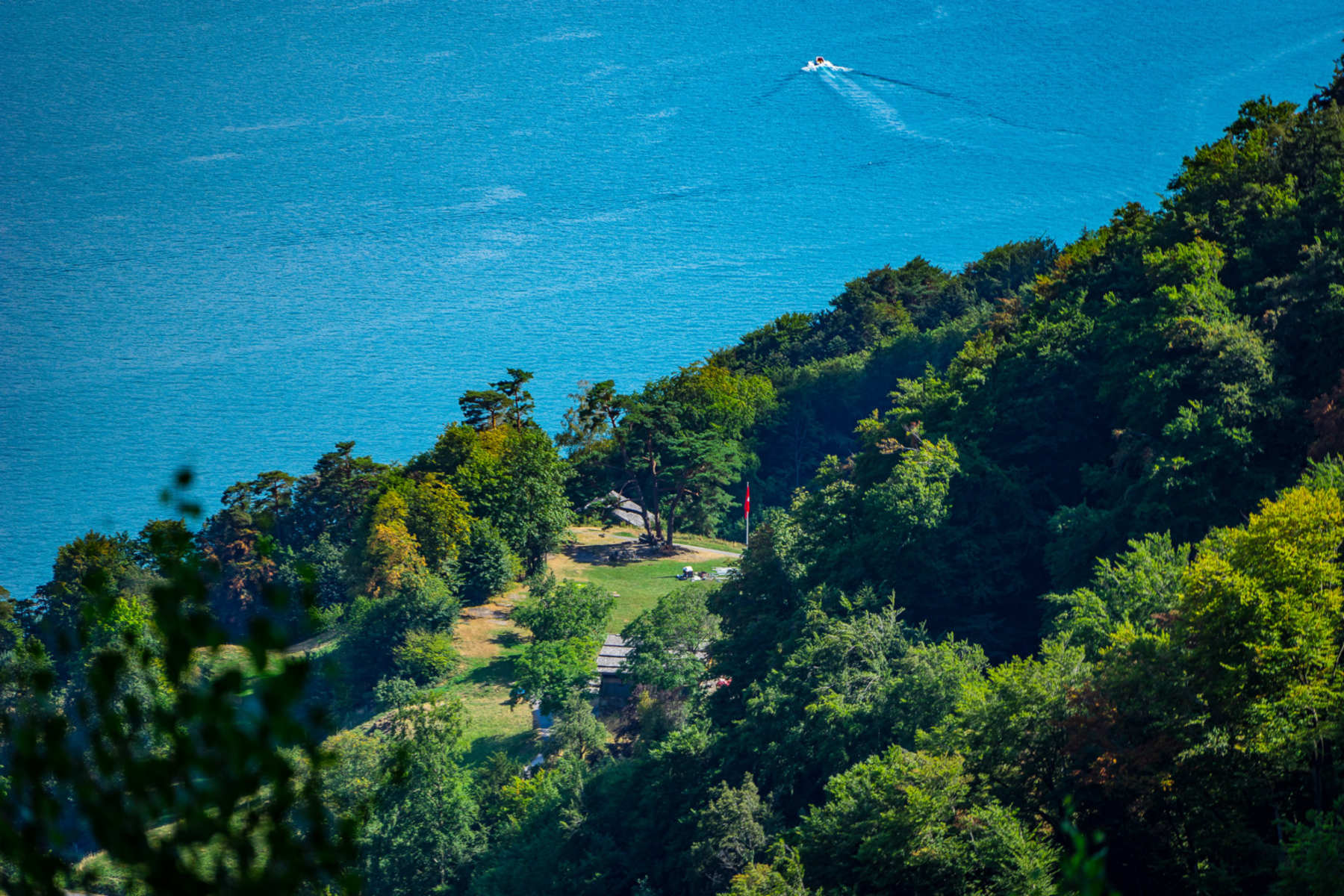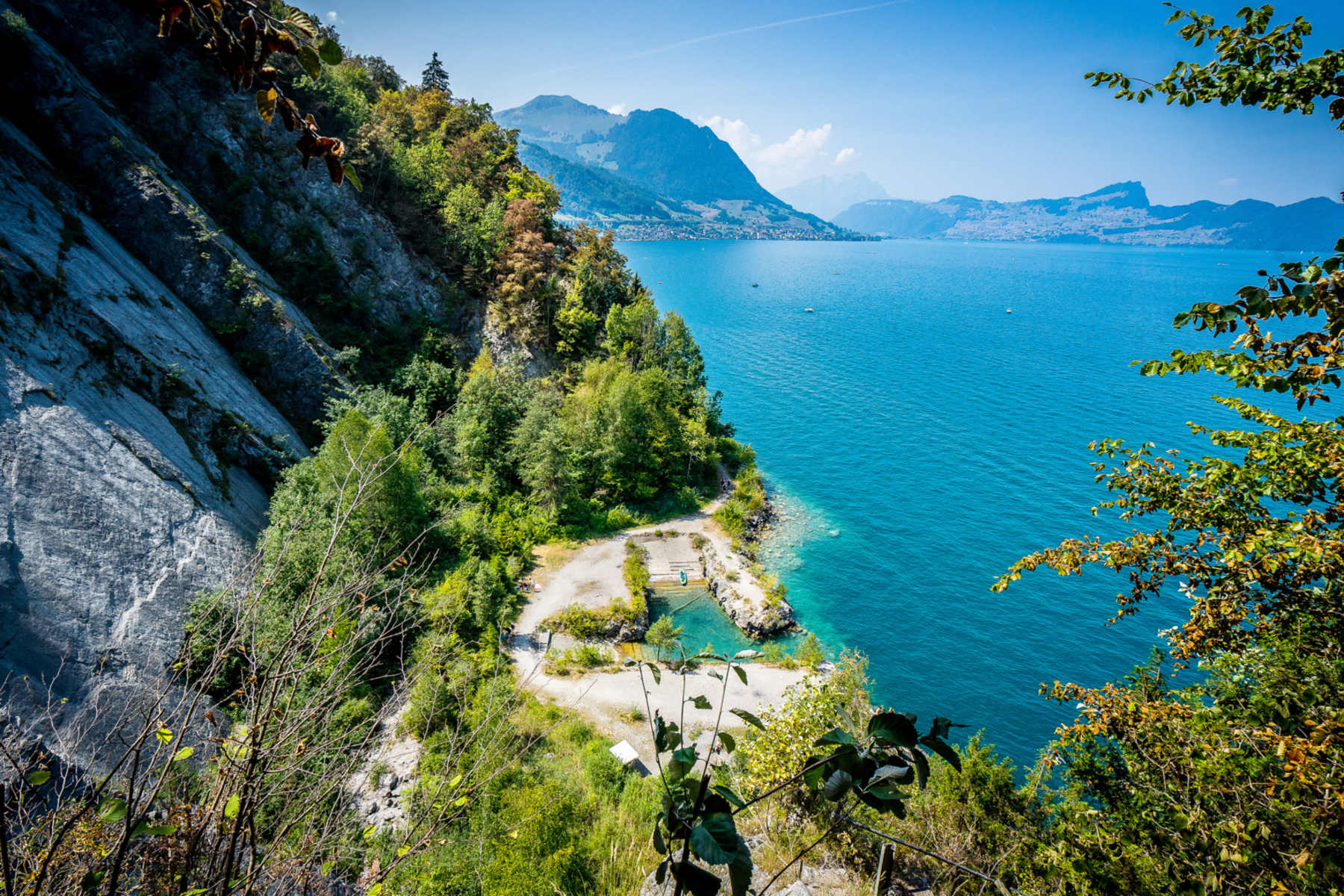 Die Abschlussetappe des Waldstätterwegs ist nochmal ein echtes Highlight. Von Beckenried führt die Route entlang des Vierwaldstättersees nach Rütli. Besonders beeindruckend ist die faszinierende Risleten-Schlucht. Man wandert hier zwischen kleinen Wasserfällen und unter Felsbändern hindurch, wobei man immer wieder schöne Ausblicke auf den See und die umliegenden Berge erhascht.