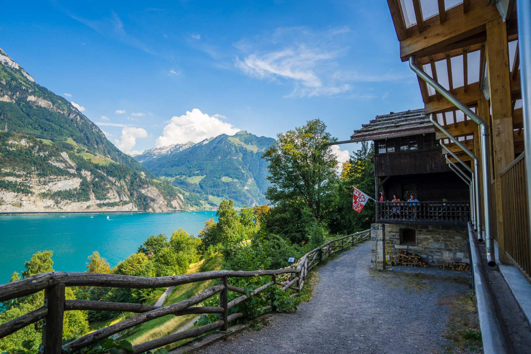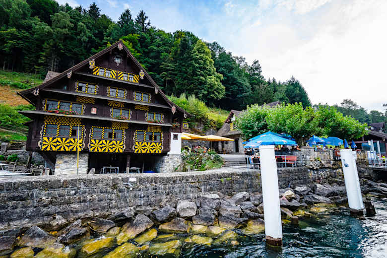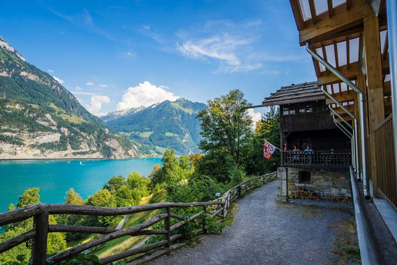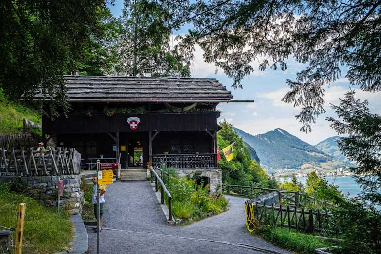 Restaurant Rütlihaus beim Rütli auf der Wanderung entlang des Waldstätterweg, Etappe 7 Beckenried-Rütli Foto: Outsideisfree.ch