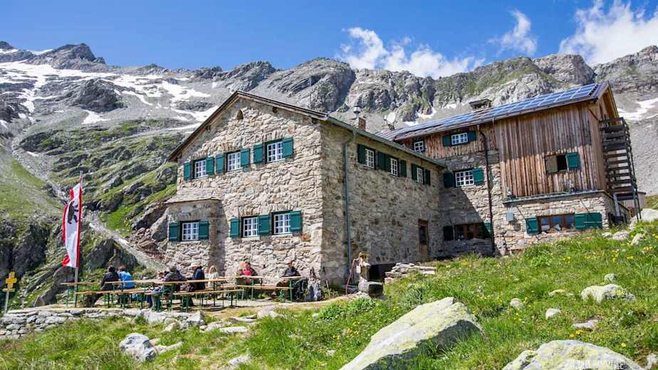 Das Friesenberghaus der Sektion Berlin steht auf 2.498 m mitten im Hochgebirgs-Naturpark Zillertaler Alpen. Das Haus aus Stein ist vom Schlegeisstausee relativ leicht in einer schönen Wanderung zu erreichen.