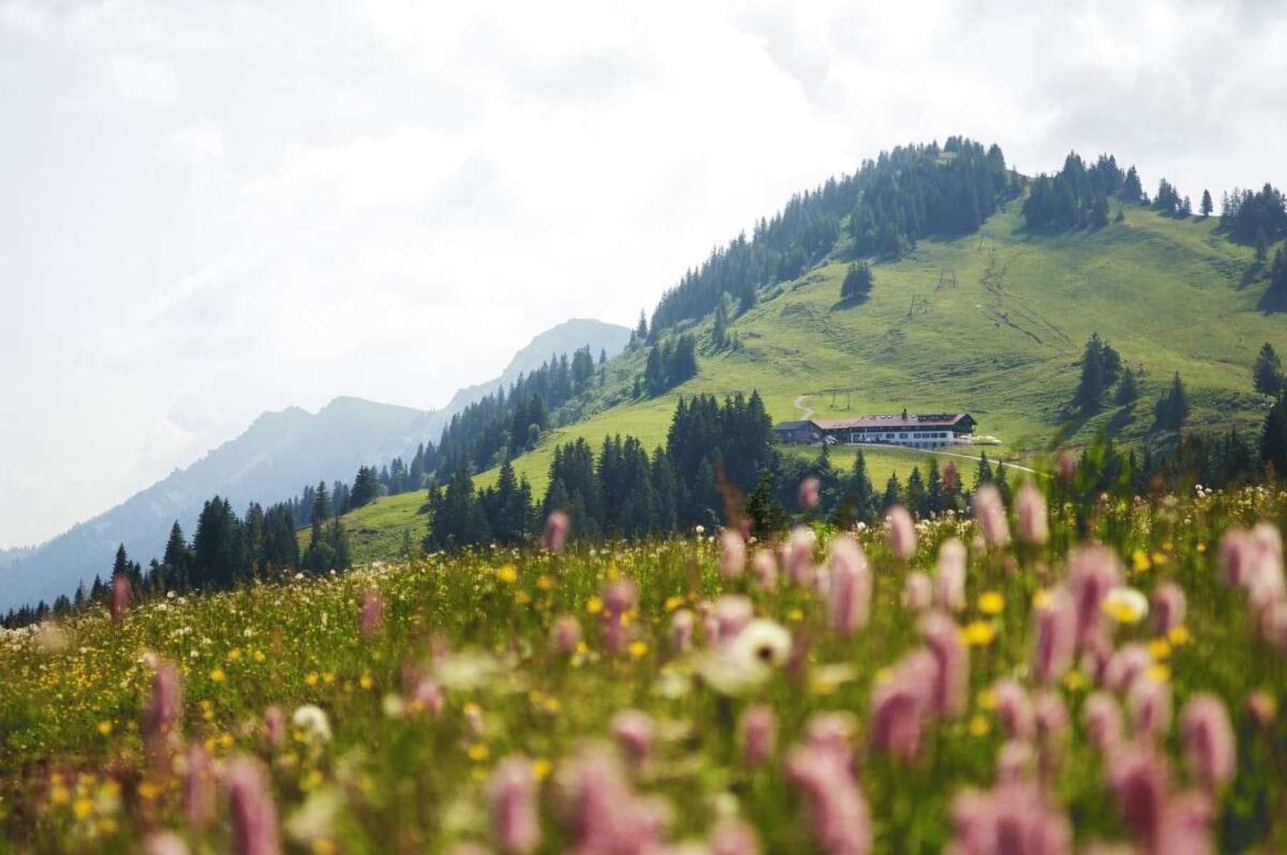 Der Berggasthof Falkenhütte seht auf 1.440 m mitten im Naturpark Allgäuer Nagelfluhkette in den Allgäuer Alpen. Während Übernachtungsgäste bis zur Hütte fahren können, wandern Tagesausflügler von der Bergstation der Imbergbahn mit dem Imberghaus in rund 2,5 h über das schöne Almgebiet bis zum Berggasthof.