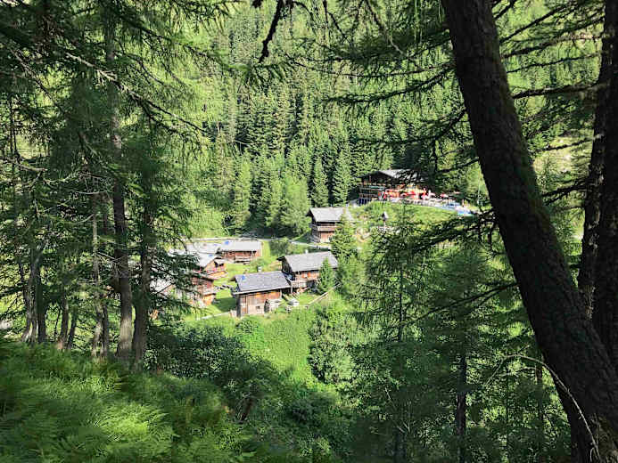 Die Häuser von Außergschlöß sind vom Wanderweg aus zu sehen. Foto: Christina Schwann, ökoalpin