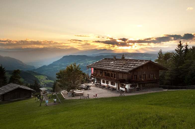 nach einer gemütlichen Einkehr auf der Familienfreundlichen Alm mit den vielen Tieren, wandert man auf dem „Knüppel-Weg“, Nr. 1, unterhalb des mächtigen Schlerns nach Süden. Man quert den Völser Bach und zweigt bald darauf auf den Weg 1A ab, der zum Hofer Alpl auf 1.364 m führt. Das schöne Berggasthaus lädt zur nächsten Rast ein.