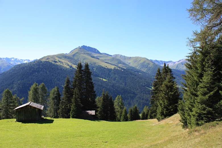 Der Anstieg zur Maienfelder Furgga wird mit einer fantastischen Aussicht belohnt. Von hier oben sieht man in der Ferne schon Arosa, eine urban anmutende Siedlung eingebettet in einen schönen Bergwald. Vor allem im Innerarosa sind heute noch die Spuren der Walser präsent.