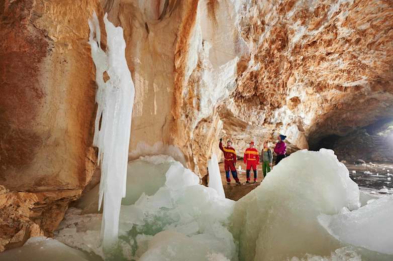 Die Schneehöhle kann besichtigt werden, was ein einzigartiges Erlebnis darstellt.