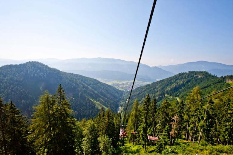Zum Abschluss der Tour weiter über den breiten Karrenweg und auf ca. 1.170 m Seehöhe links in den Wanderweg abzweigen. Dieser führt direkt zum Alpengasthaus Schwabenbartl und somit zum Ende dieser Almentour. Mit dem Kombi-Ticket der Aflenzer Sesselbahn kann man mit dem Taxi vom Schwabenbartl gemütlich retour nach Aflenz fahren. Die aktuellen Zeiten und Preise erfährt man beim Tourismusverband Hochsteiermark.