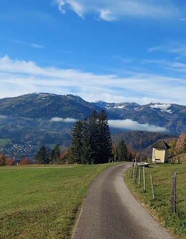 Der Rückweg erfolgt entlang der zuletzt begangenen Forststraße. Anfangs noch eben wird die Straße im Sackwald zunehmend steiler. Ständig lichten sich die umgebenden Wälder und man blickt auf den Talschluss des Buchbergs und zu den Bergen über dem Trawiestal im Osten. Zum Schluss folgt man dem markierten Häuslalmweg zurück zum Bodenbauer.