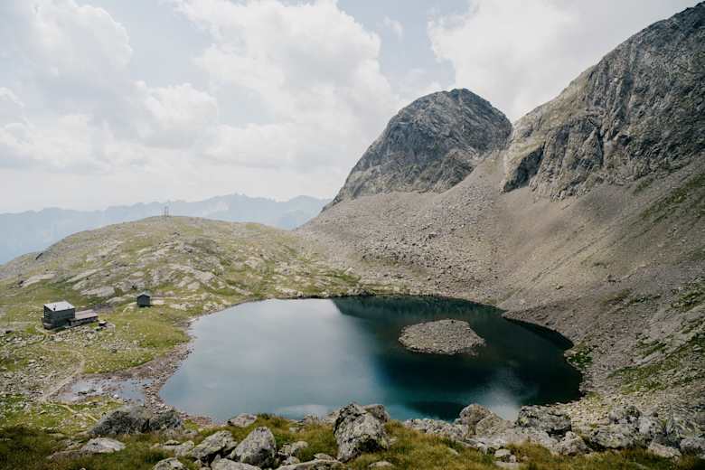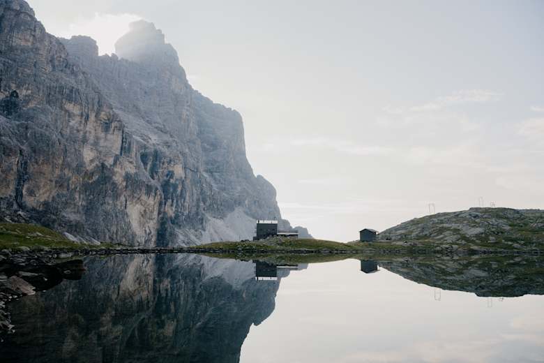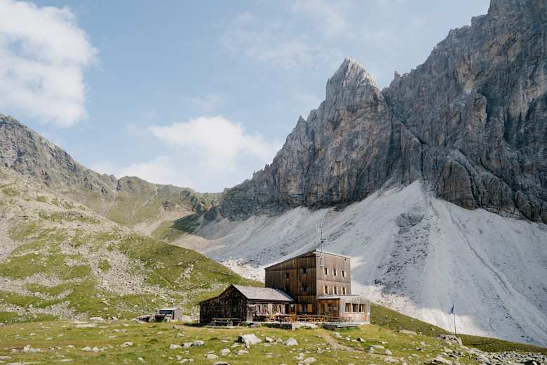 Östlich des Sandessees steht die kürzlich umgebaute Tribulaunhütte auf einer kleinen Anhöhe.