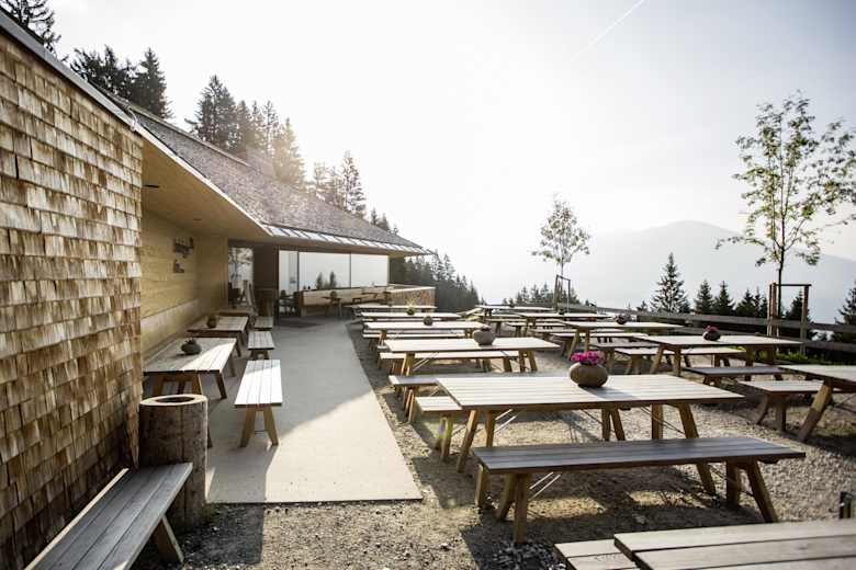 Von der Hungerburg wandert man in Richtung Umbrüggler Alm, wo man schon das erste Mal einkehren kann.