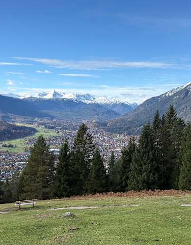 Von Boscheben geht es dann auf dem schön angelegten Zirbenweg zurück zur Patscherkofelbahn. Der Blick hinunter ins Tal auf Innsbruck ist ebenso grandios wie auf die Nordkette und die weiteren Gipfelketten des Karwendels, die sich dahinter erheben.