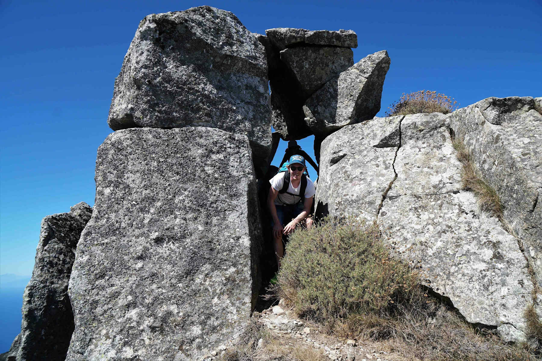 Vom Chiessi, an der einsam-wilden Westküste von Elba führt der Weg über alte Terrassenkulturen zum wuchtigen Granitklotz des Monte San Bartolomeo (437 m). Der Gipfel selbst bleibt sportlichen Wanderern vorbehalten, da die letzten Meter über ein senkrechtes Stahlseil hochgehantelt werden müssen. Gemütlich geht es durch immergrünes, duftendes Macchiegebüsch weiter. Ab dem 936 m hohen La Tavola folgt der Weg einem ausgesetzten Granitgrat, dankbar nimmt man dabei die neu errichteten Stahlseile in die Hand.