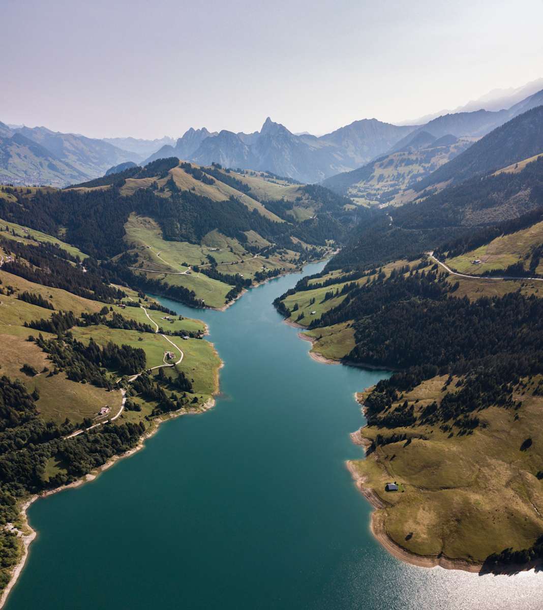 Die vorletzte Etappe der Via Alpina hat es in sich. Die Tour startet mit einem ausgesetzten Anstieg über die “Traverses” von Rossinière durch den Wald zu La Tanchin. Hier öffnet sich die Aussicht und der Blick fällt erstmals auf Château-d’Œx und das atemberaubende Bergpanorama. Untem im Tal ruht der Lac de Hongrin mit seinem dunkelblauen Wasser.
