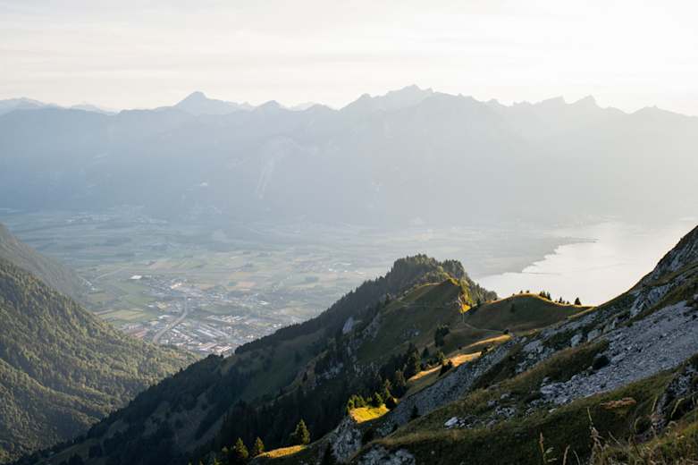 Zum Etappenfinale geht es nochmal hoch hinaus: Die Aussicht vom Rochers de Naye auf den Genfersee mit Montreux sowie auf das Mont-Blanc- und das Jungfraugebierge verschlägt einem schier dem Atem.