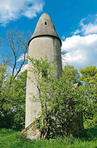 Gut zu wissen: Die Berger Warte ist ein in der Mitte des 16. Jahrhunderts errichteter Wartturm. An der Warte begann beziehungsweise endete der Geleitschutz, den die Stadt Frankfurt reisenden Händlern gewährte.