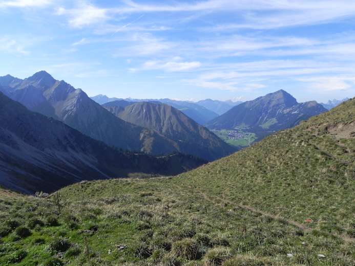 Das Tal mit der Nordwand der Gartner Wand ist sehr eindrucksvoll. Der Steig führt ziemlich steil hinauf ins Sommerbergjöchl, dem Einschnitt zwischen Gartner Wand und Pleisspitze. Nun geht man nach rechts in Richtung Gipfel.