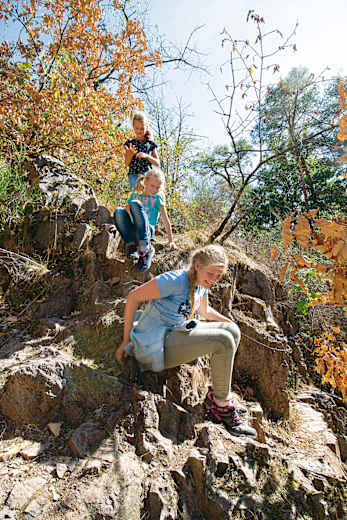 Im Steinbruch kraxeln wir am liebsten stundenlang – deshalb Zeit für die Stationen mitbringen! Foto: Bergverlag Rother - Kira Klug