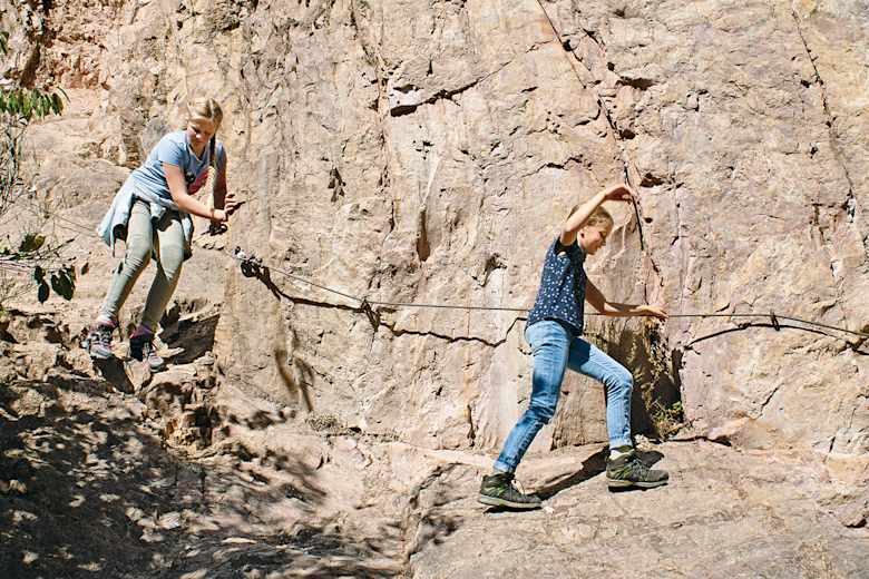 Am Klettersteig: Gut festhalten! Foto: Bergverlag Rother - Kira Klug