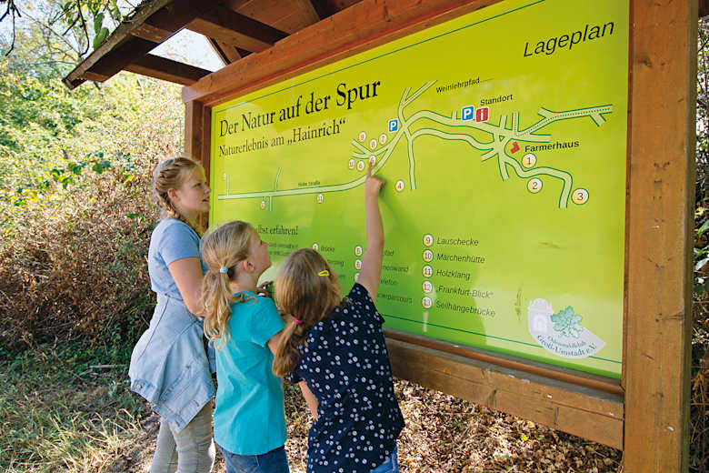 Hängebrücken und Klettersteig in der "hessischen Toskana": Ja sind wir denn schon in Italien?! Unsere Tour liegt in einer Region, die oft als »Weininsel« oder »hessische Toskana« bezeichnet wird, denn die Landschaft erinnert an diese italienische Provinz: Weinberge, Nadelbäume, Felder, Obstwiesen und die Hügel des Odenwaldes verbreiten Urlaubsstimmung. Unsere Rundtour, die auch abgekürzt werden kann, startet am Bahnhof mit einer Besichtigung der Altstadt. Nach den beschaulichen Fachwerkhäusern und Schlösschen folgt ein knackiger Aufstieg zum Einstieg des Erlebnispfads »Hainrich« des Odenwaldklubs. Zahlreiche Spielstationen, die all unsere Sinne ansprechen, wollen erobert werden: Kinder und Erwachsene begeistern sich fürs Bauen und Balancieren, Kraxeln und Klettern, Lesen und Lauschen, sodass keine Langeweile aufkommt. Zahlreiche Raststationen und Panoramapunkte verschaffen vom Anstieg ermüdeten kleinen Wanderern genügend Pausen, um sich dann voller Vorfreude zur nächsten Attraktion zwischen den Weinbergen aufzumachen. Der Rückweg führt über den Weinlehrpfad hinab auf die Felder und zurück in die Ortsmitte.