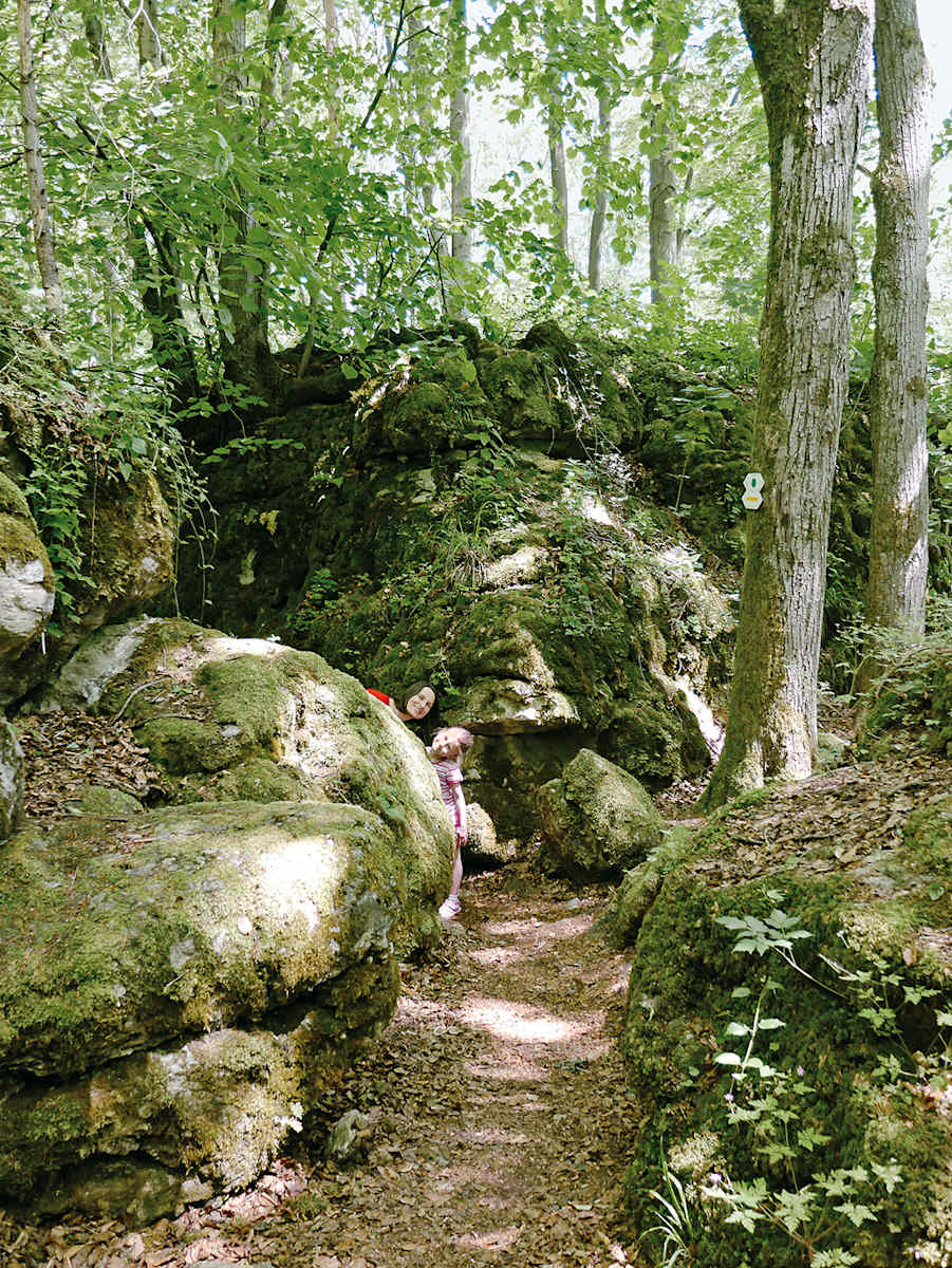 - Gute Kraxel- und Versteckmöglichkeiten in der "Steinernen Stadt", auf der Weißingkuppe und an der Vogelherdgrotte.
