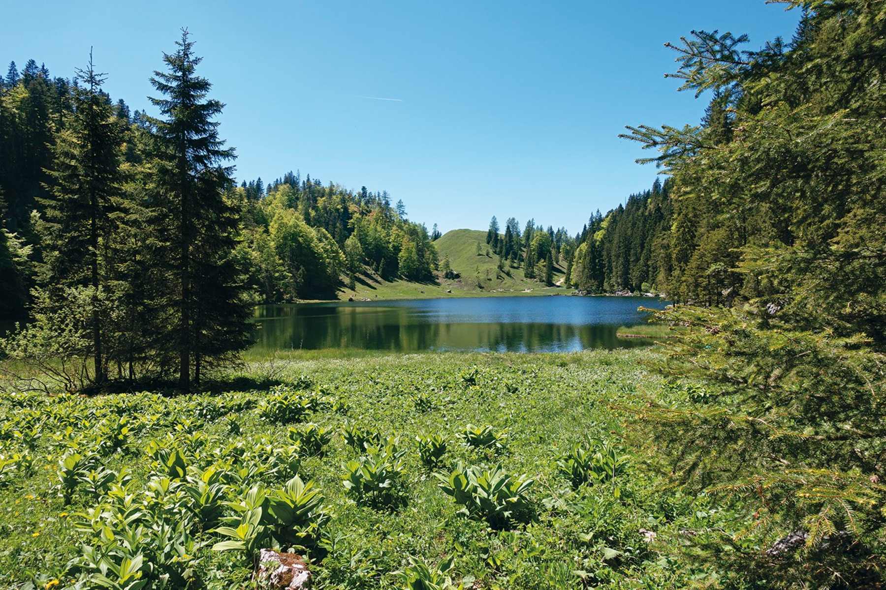 - Der Taubensee hoch oben am Berg. - Foto: Sabine Kohwagner und Susanne Pusch, Bergverlag Rother  - Ein verwunschener Waldsteig führt hinauf zum See. - Foto: Markus Stadler, Bergverlag Rother  - Über die Wiese zum See hinab. - Foto: Markus Stadler, Bergverlag Rother  - Im Taubensee tummeln sich im Frühling unzählige Kaulquappen. - Foto: Markus Stadler, Bergverlag Rother - Bildergalerie (4)