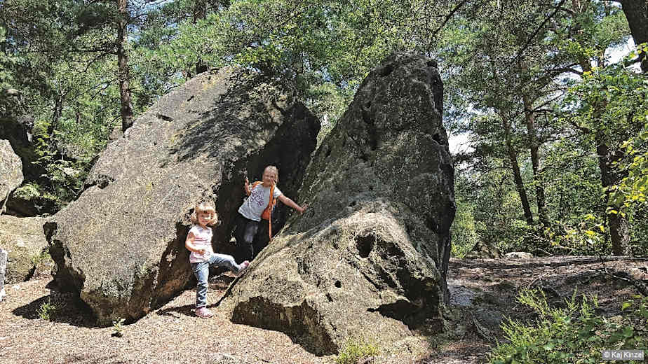 Am Kleinhennersdorfer Stein macht das Herumkraxeln zwischen den Felsen richtig Spaß. Hier hat der »Sandhampel« seine schwere Arbeit verrichtet. Foto: Kaj Kinzel, Bergverlag Rother GmbH Bildergalerie (3)