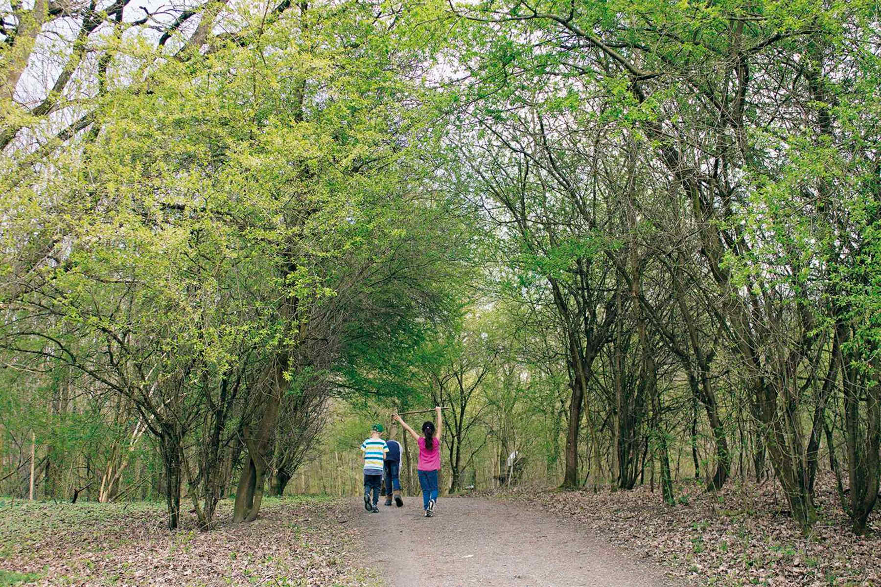Wie ein Portal in eine andere Welt: Auf dem Wanderweg geht es vom Gewerbegebiet in den Fechenheimer Wald. Foto: Kira Klug, Bergverlag Rother Bildergalerie (4)