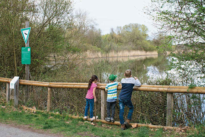 Gebanntes Publikum am Riedteich: Wasservögel sind hier die Stars.Foto: Kira Klug, Bergverlag Rother