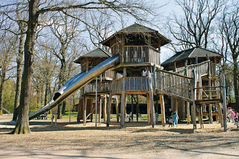 Im Heinrich-Kraft-Park begeistern die Kletterburg und der integrative Spielplatz die Kinder.Foto: Kira Klug, Bergverlag Rother