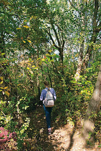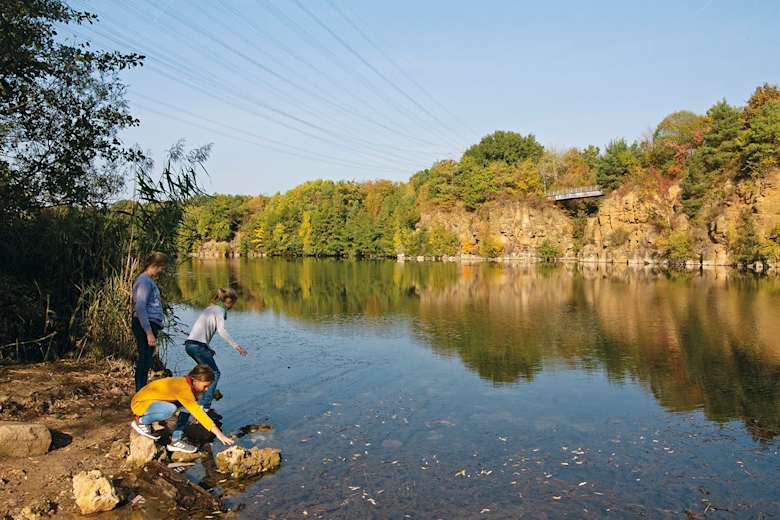 Wenn man auf der Canyon-Brücke steht, will man nicht meinen, dass man nur einen Katzensprung von einer Metropole entfernt ist. Vielmehr fühlt man sich wie in einer ganz anderen Welt. Steile Kliffe erheben sich über dem Wasser und verwunschene Pfade schlängeln sich entlang des Ufers. Vom Bahnhof ist es nicht weit bis zur Seenlandschaft, die in Hecken und Stadtwald eingebettet liegt. Wir halten uns auf den markierten Wegen, um die im Naturschutzgebiet lebenden Tiere nicht zu stören. So idyllisch es an den Seen ist, so unheimlich muten die uralten Säulen des Steinheimer Galgens am Wegesrand an. Bevor uns hier im Wald die Geister der Hingerichteten heimsuchen, laufen wir lieber schnell weiter, zurück zu den Seen. Vom Ufer sehen wir die imposante Canyon-Brücke, von der wir nach einem kurzen Aufstieg einen schönen Ausblick genießen können, bevor wir uns auf einem der schmalen Pfade auf den Rückweg begeben.