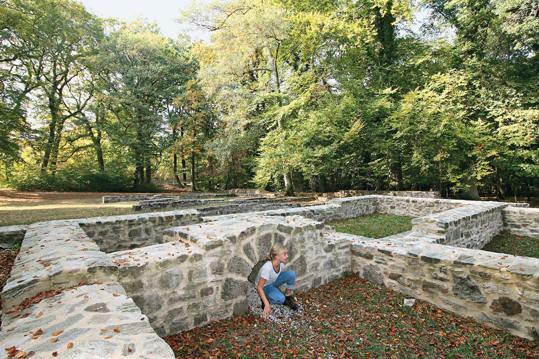 - Hier endet das Römische Reich – Latein-Crashkurs inklusive.Foto: Kira Klug, Bergverlag RotherNaturnahe Wege führen uns auf den Limeserlebnisweg.Foto: Kira Klug, Bergverlag RotherDie Ruinen am Römerkastell ziehen uns magisch an, ein Spielplatz sind sie aber nicht.Foto: Kira Klug, Bergverlag RotherTrotz vereinten Kräften bleibt der Pfahllimes unüberwindbar.Foto: Kira Klug, Bergverlag Rother