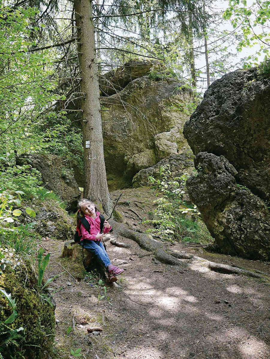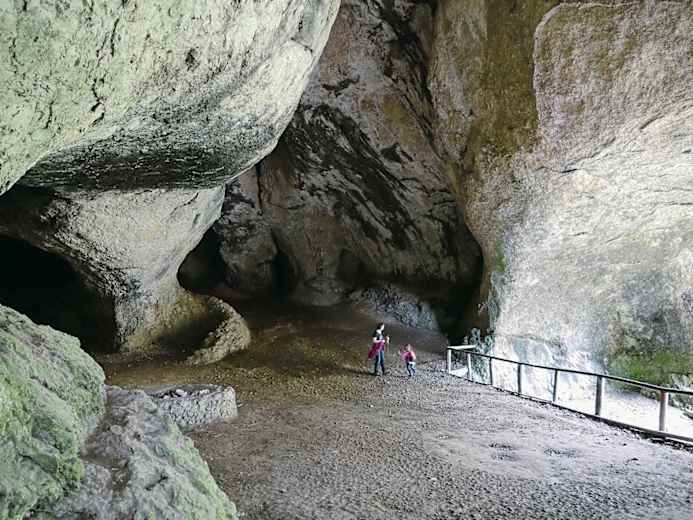 2) Ab 3 Jahren. Vom Parkplatz auf direktem Weg der Beschilderung folgend zur Sophienhöhle (1,3 km, 30 Min. Gehzeit).