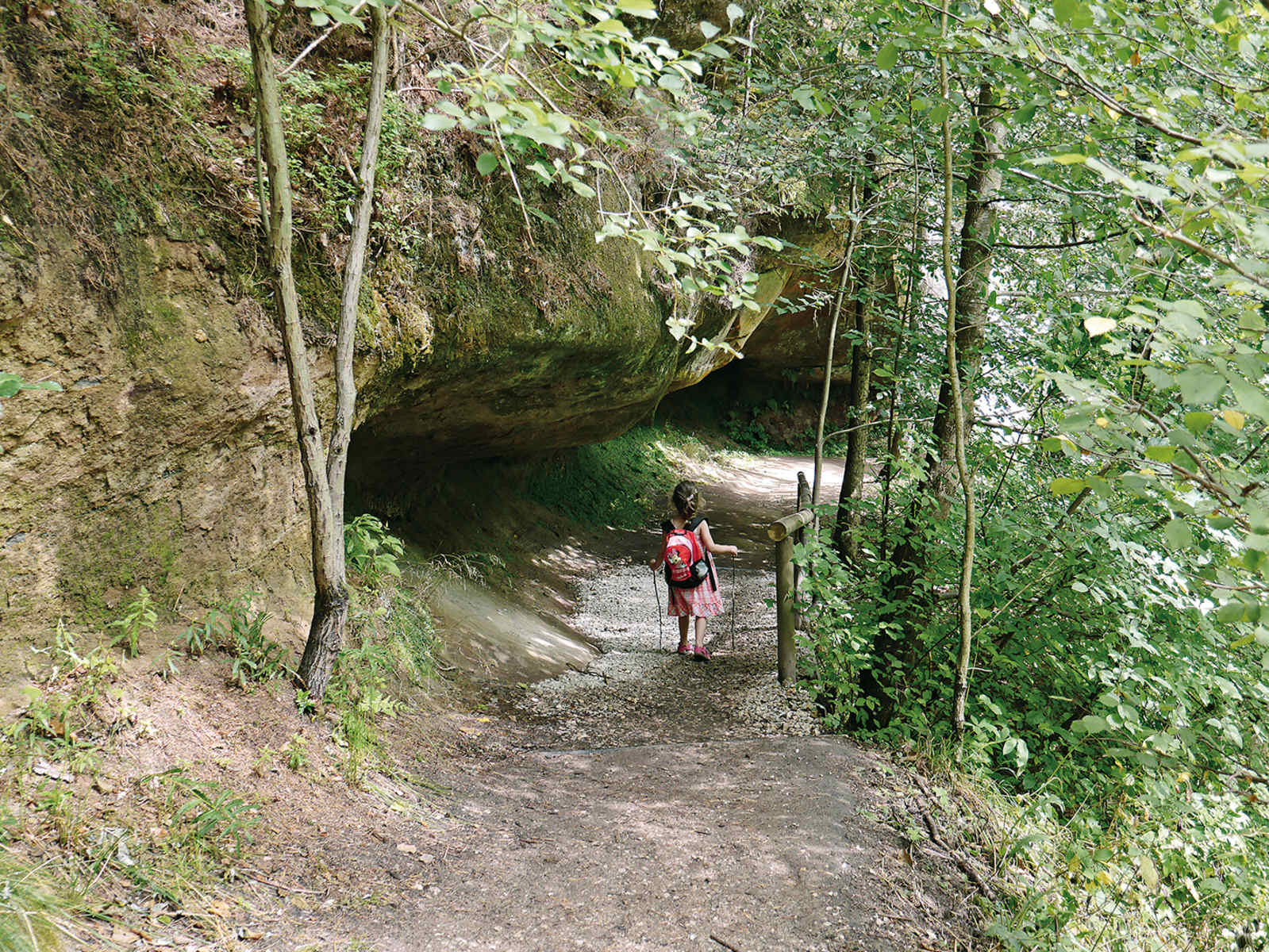 Ab 4 Jahren. Bequeme Wanderpfade und Forstwege. Einstieg und Verlassen der Klamm über viele Treppenstufen. Meist schattige Wanderung.