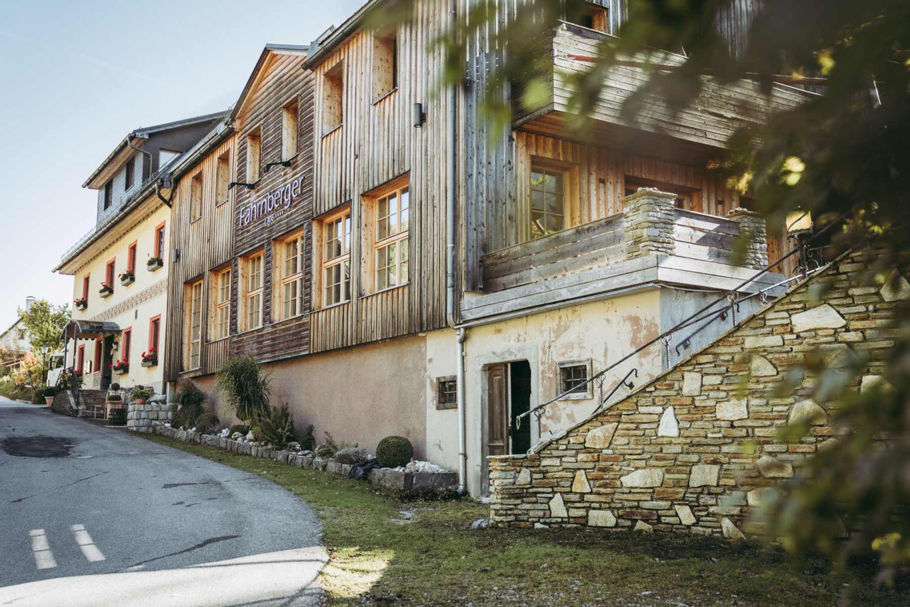 Nach dem Ortsplatz leitet die Beschilderung links auf einen kleinen Hügel und am Forstweg vorbei an einem Wildgehege. Man folgt dem Weg mit der Nummer E66 immer gerade aus weiter, passiert noch einige Wohn-und Bauernhäuser und erreicht den Parkplatz Anzenbach.