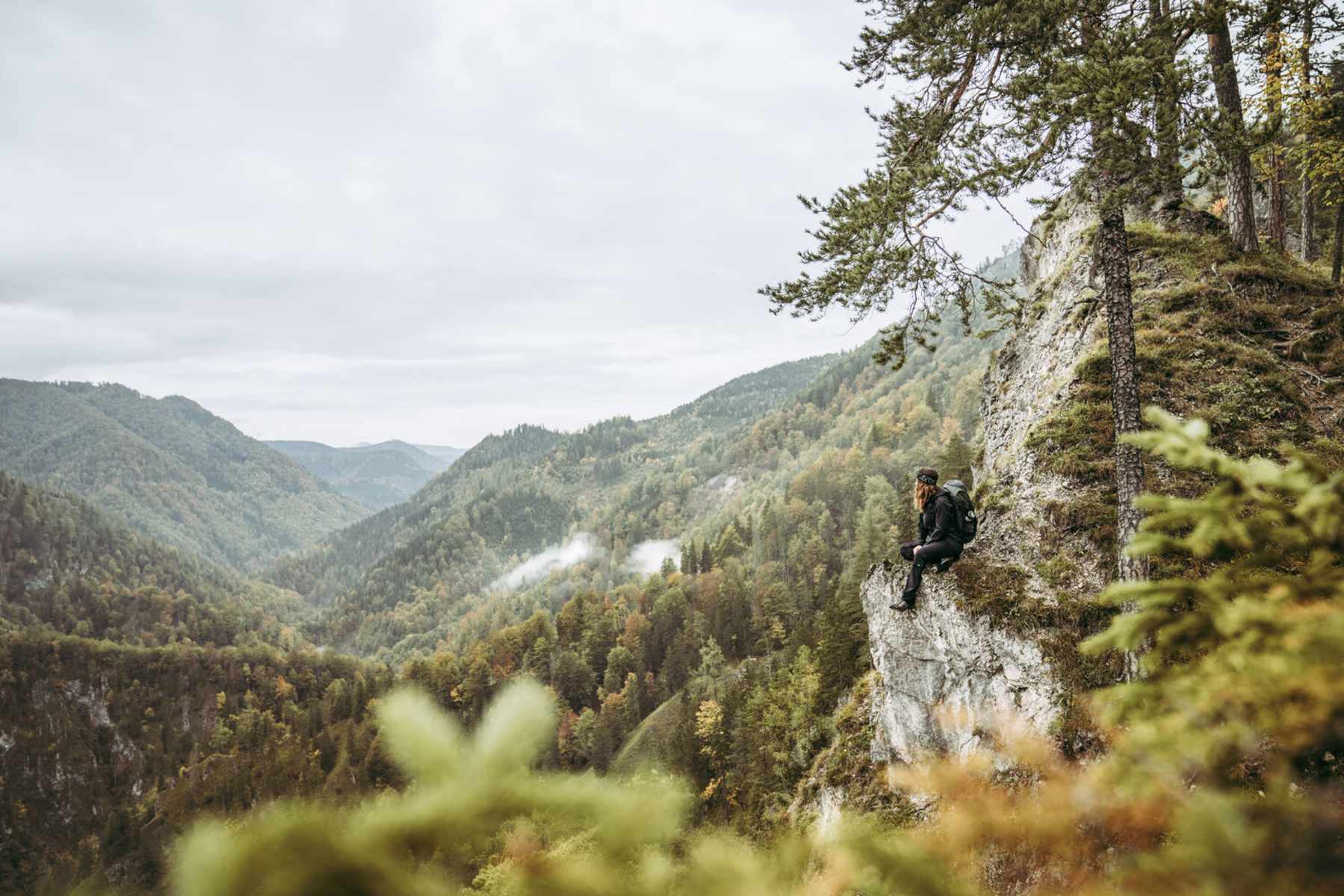 Auf dem Weg hinunter in die Schlucht genießt man immer wieder wunderbare Aussichten auf die Wildnis des Nationalparks Kalkalpen. Kein Wunder, dass sich der Luchs hier wohlfühlt.