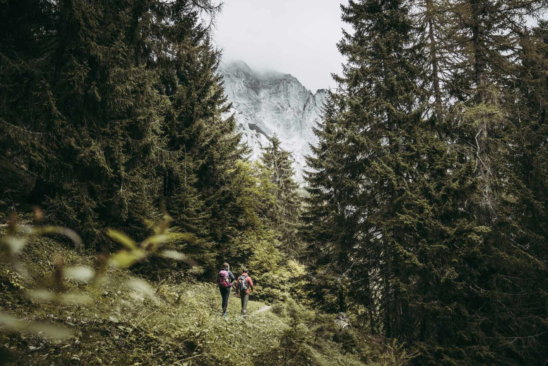 Am fünften Tag am Luchs Trail wandert man von der Klinkehütte über die schroffen Gesäuseberge ins Bergsteigerdorf Johnsbach. Eine abwechslungsreiche Wanderung durch dichte Wälder und Almen mit wunderschöner Aussicht.