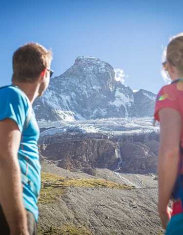 Der zweite Teil der Königsetappe der Tour Monte Rosa Matterhorn führt von der Europahütte nach Zermatt. Dabei gibt es einiges zu sehen: Neben sagenhaften Ausblicken auf das Matterhorn, locken die längste Fussgänger-Hängebrücke der Welt und ein anspruchsvoller, stellenweise in den Fels gehauener Pfad durch Tunnels und Galerien. Eine grandiose Wanderung im Anblick der Viertausender der Walliser Alpen, mit grossartigem Finale in Zermatt.
