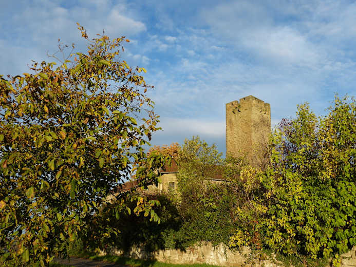 Von der Burg wandert man nach Norden und überquert die Straße zwischen Sulzfeld und Mühlbach. Über freie Felder geht man weiter zu einer kleinen Straße. Auf dieser biegt man nach links ab, um wenig später wieder nach rechts zu gehen. Nach links überquert man die Gleise und wandert in einem großen Bogen zurück nach Sulzfeld.