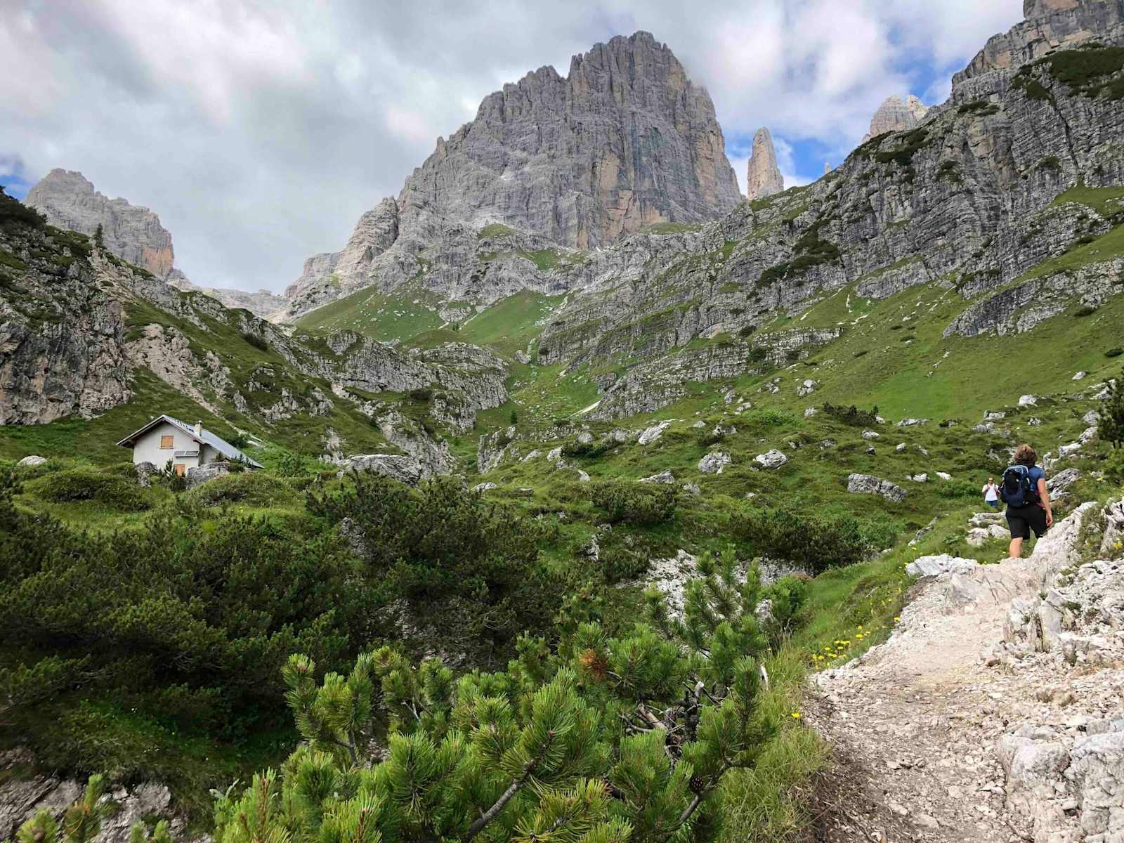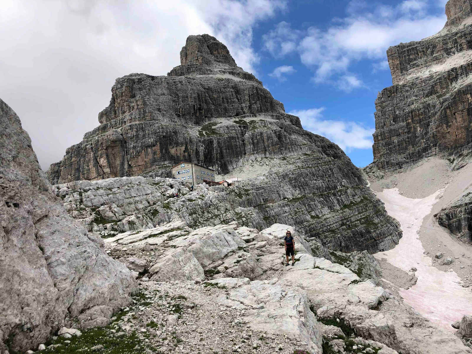 Das Refugio Pedrotti und die Tosa Hütte liegen nur 30 m auseinander. Beide stehen in der zum UNESCO-Welterbe zählenden Dolomitenkette der Brenta. Sie sind von Molveno aus über das Val di Seghe auf dem Weg 319 zu erreichen.