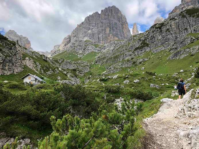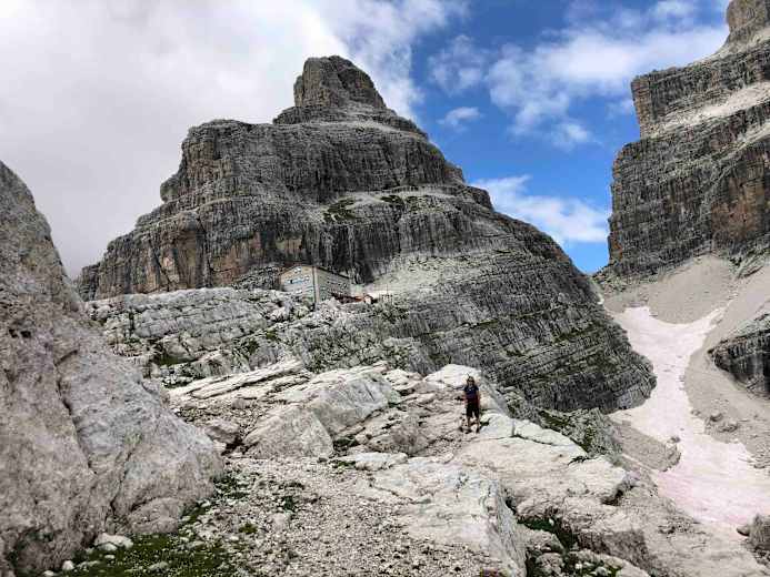 Ab dem Rif. Selvata führt der Weg 319 nun wunderschön durch die beeindruckend Gebirgslandschaft der Brenta über die „Massodi“ mit einem kleinen See bis hinauf zum Rif. Tosa, das allerdings nur als Ersatzquartier für das Rif. Pedrotti dient. Noch rund 30 Höhenmeter mehr, dann hat man es geschafft und das Rif. Pedrotti erreicht.
