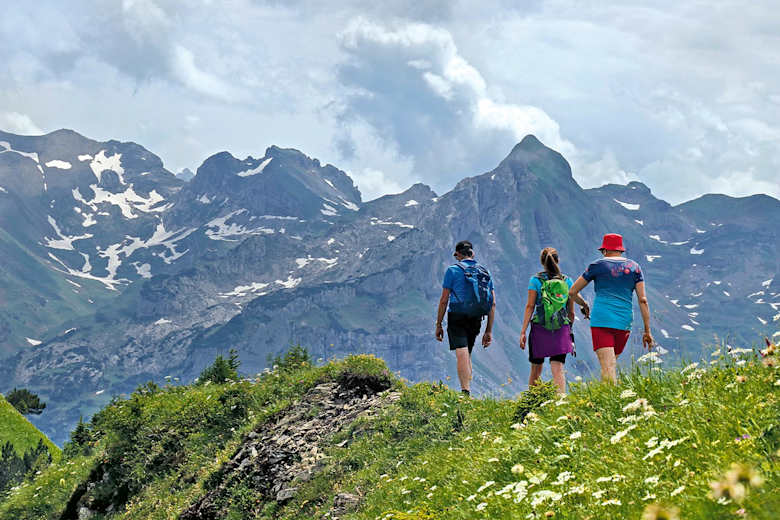 Der populäre „Gratwanderweg Stoos“: Die einzigartige Innerschweizer Topografie kommt mir immer wieder vor wie eine Modelllandschaft aus dem Bilderbuch. Von diesem Eindruck überzeugen kann man sich in exzellenter Weise auf einer voralpinen Gratwanderung zwischen Fronalp- und Chlingenstock, die das autofreie Bergdorf Stoos einrahmen. Die Hotelsiedlung liegt wie auf einem Balkon über dem vorderen Muotatal – vis-à-vis der beiden Mythen – und ist auch als Skigebiet bekannt. Zur vollen Entfaltung gelangt das Panorama freilich erst auf der bestens ausgebauten Kammstrecke. Während der Fronalpstock unmittelbar gegen die tiefe Furche des Urnersees abbricht, zieht die Gratlinie zum Chlingenstock bereits über dem Riemenstaldner Taleinschnitt entlang. Mithilfe zweier Sesselbahnen an den Eckpunkten kann man sich übrigens auf das zweistündige Kernstück beschränken. Jene am Chlingenstock hat allerdings eingeschränkte Betriebszeiten.
