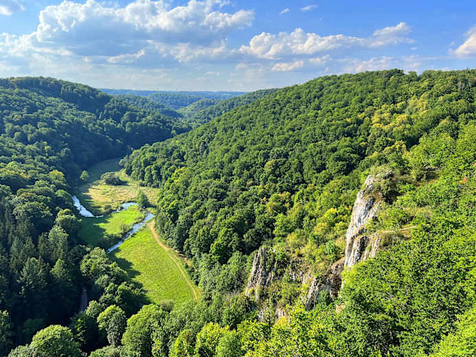 Der Burgfelsenpfad führt in das Große Lautertal, zu einem der schönsten und burgenreichsten Täler in Baden-Württemberg. Grandios ist die Aussicht von der Burgruine Wartstein auf das Tal.