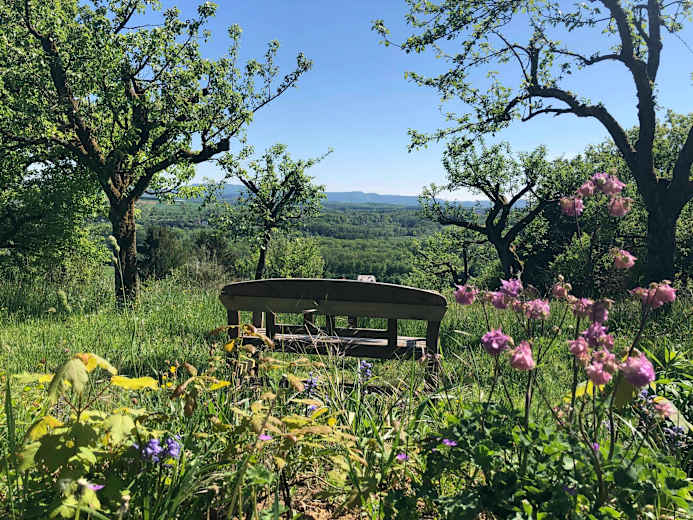 Der Qualitätswanderweg “hochgehblickt“ führt zum 2000 Jahre alten römischen Gutshof Villa Rustica. Die Aussicht ist so schön, dass sie tief berührt. Anschließend besucht man eine Alpakafarm und wandert über Streuobstwiesen zurück zum Ausgangspunkt.