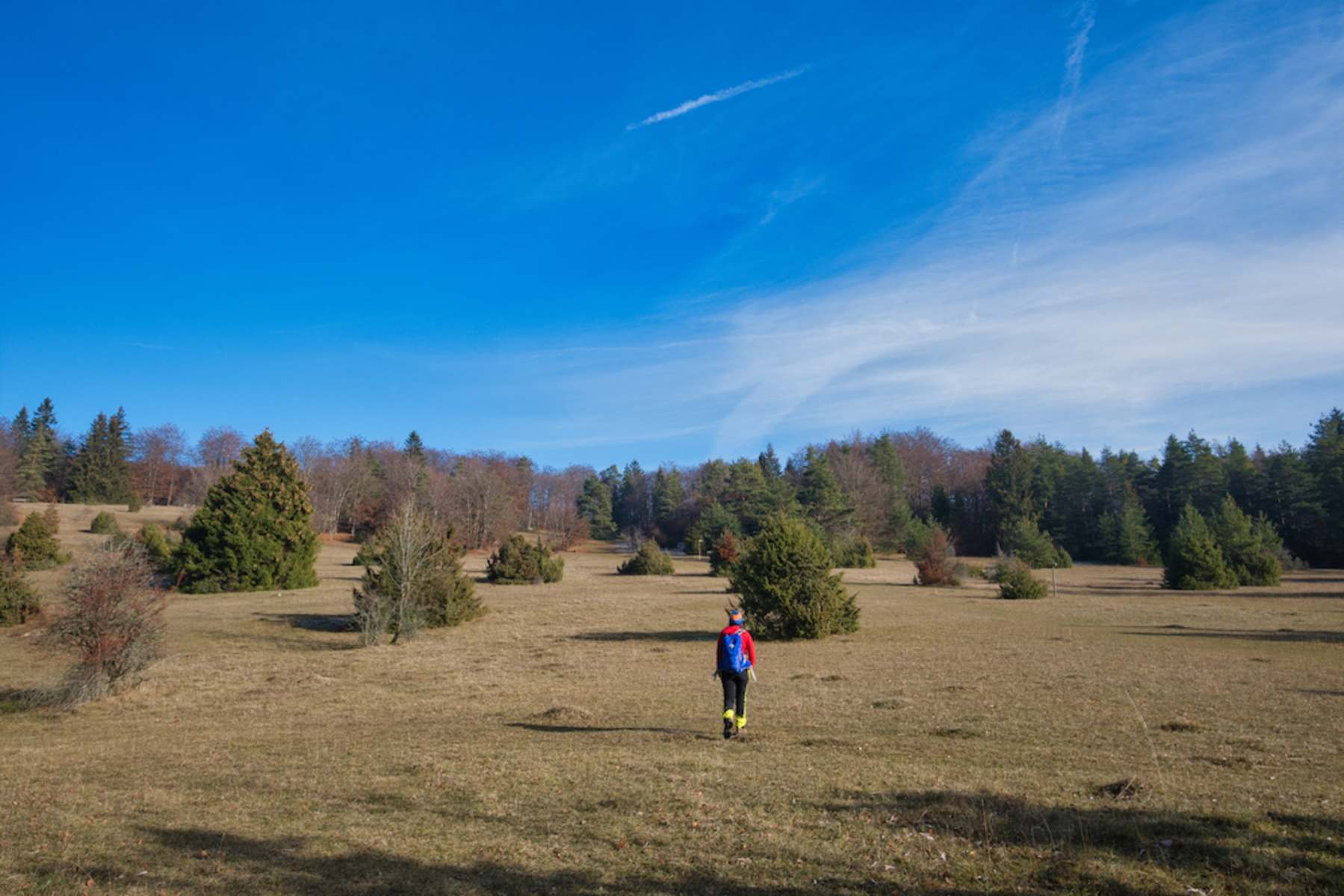 Nun für der Steig über die Wacholderheide „Hinter dem Sternberg“ und weiter zur Straße, die zum ehemaligen Schafhaus führt.