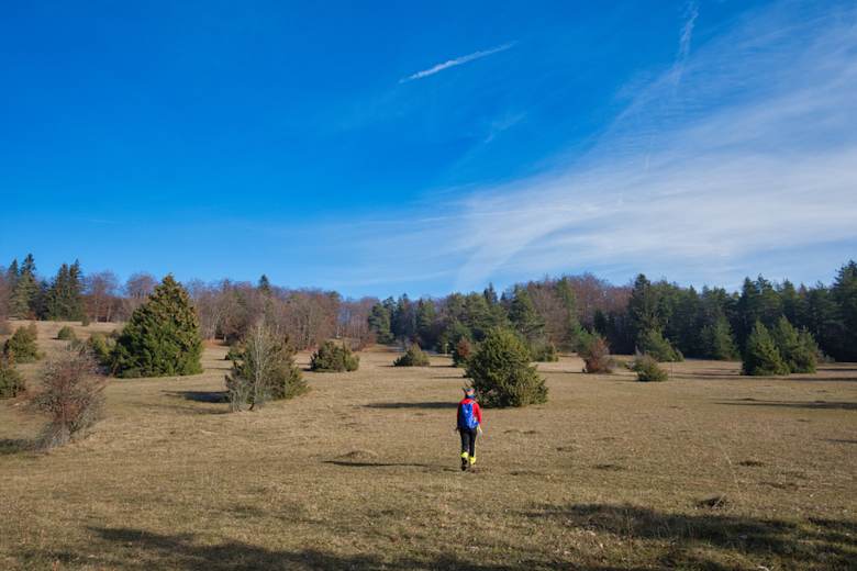 Vom Wanderparkplatz Braikestal folgen wir den Markierungen zu einer ersten großen Wacholderheide. Wir passieren die Grillstelle und wandern in einem Bogen über die Heide zum Waldtrauf mit einer schönen Bank. Von hier genießen wir eine tolle Aussicht.