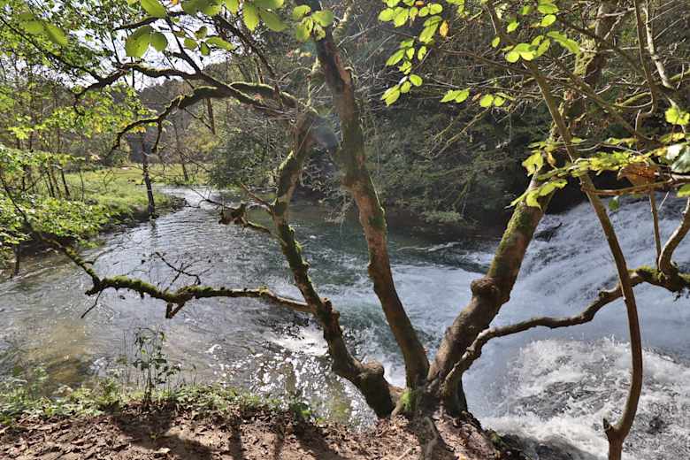 Von der Ruine geht es wieder ins Tal und weiter zur Karstquelle Blaubrunnen und dem Wasserfall Hoher Gießel. Weiter geht es am Heuscheuerle vorbei, über dem sich eine Höhlenruine befindet. Nun ist es nicht mehr weit zum Ausgangspunkt, den man über eine Brücke auf der man die Lauter überquert erreicht.