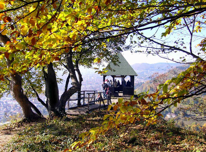 Einige Felsen bieten einen prächtigen Ausblick. Vom Schlossfelsenturm genießt man an klaren Tagen einen Blick bis zu den Bergen der Schweizer Alpen.