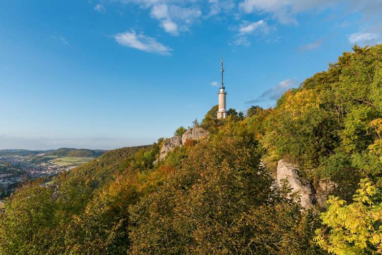 Weiter führt der Weg zum Mühlen- und Galgenfels. Von hier oben genießt man einen wunderbaren Ausblick ins Tal. Der Weg führt weiter zur Schleicherhütte, einem toll gelegenen Aussichtspavillion und zum Schlossfelsen mit dem Schlossfelsenturm. Wir genießen einen traumhaften Ausblick auf Ebingen und die umliegende Umgebung.