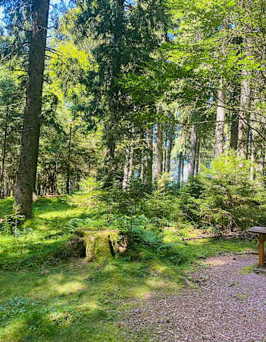 Ab hier geht es bergauf in Richtung Hörnle. Der Weg führt durch einen urwüchsigen Wald bis zum Aussichtspunkt. Hier oben legt man eine Pause ein und genießt die Aussicht bis zum Feldberg.