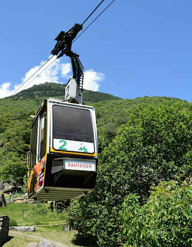 Mit der Bahn bis zum Bahnhof Rivera-Bironico - zu Fuß bis zur Seilbahn-Taltstation.