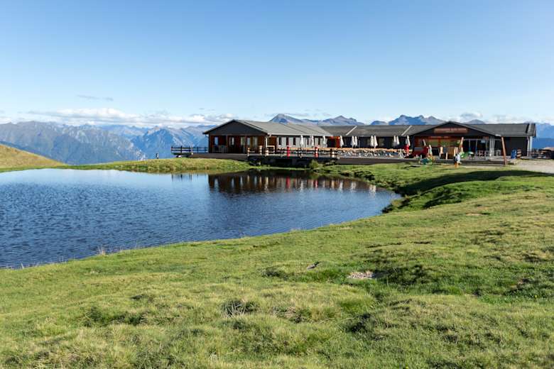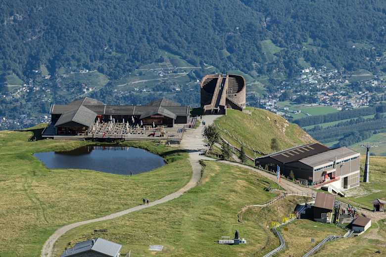 Dieser folgt man für eine Kehre, ehe man sie an der zweiten Kehre wieder verlässt. Der Weg führt nun über den Foppa-Nord-Trail aufwärts bis auf den Rücken der Alpe Foppa. Von Norden kommend erreicht man das Bergrestaurant Alpe Foppa, welches in bester Aussichtslage direkt neben der Seilbahn-Bergstation liegt.