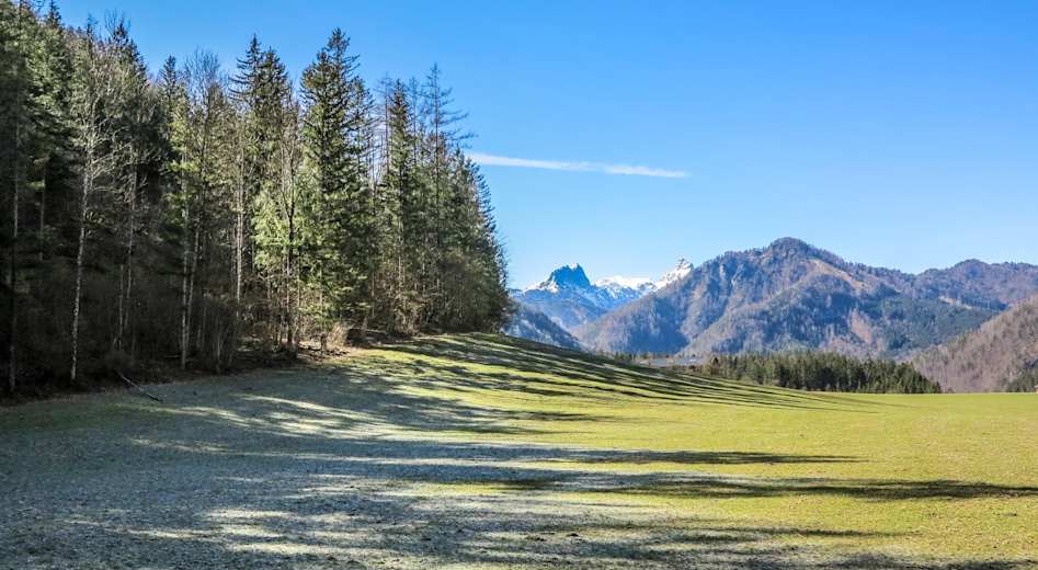Weiter geht es rechts über die Salzabauernbrücke zum Anwesen Mooslandl 1, dem Salzabauer und über den Karl August Steig mit Salzablick nach Gams. Über die Radstatthöhe und den Ganser Mühlsteinbruch genießt man einen Rundblick über Landl und die Gesäuseberge.
